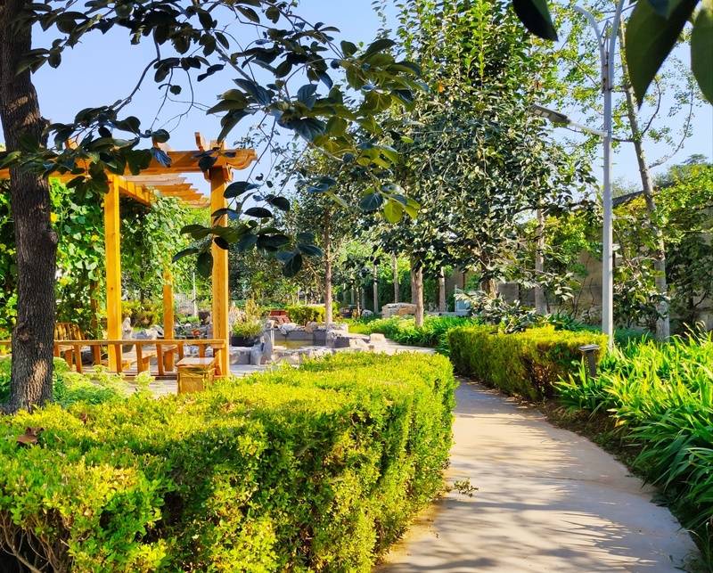 生态环境亮点:北京市朝阳区彩虹村庄养老院占地约200亩,其中70%为园林绿地,搭配40余亩澄澈池塘,院内树木葱郁、蔬果飘香,亭台楼阁与曲径长廊交错,湖光山色相映成趣,宛如天然氧吧,是老人亲近自然、安心养老的绝佳选择。