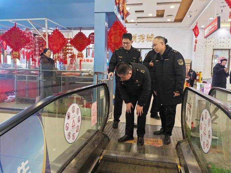 在万嘉购物广场有限公司,执法人员重点查看了人员密集场所电梯的使用情况,对自动扶梯的急停开关是否灵敏、梳齿板有无破损、梯级运行是否平稳进行现场测试,督促使用单位加强客流高峰期间的现场引导和秩序维护,严格落实节日期间专人值守制度,确保特种设备使用安全。